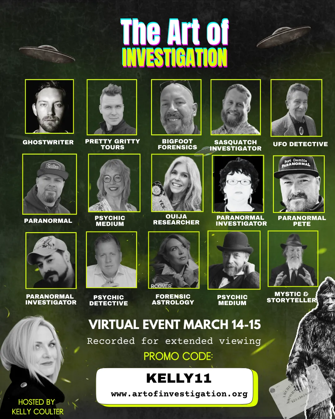 The Art of Investigation is my newest virtual event and it is built for lifelong learners, armchair detectives, paranormal lovers, and anyone who refuses to stop asking questions. Over two days you’ll hear from a lineup of investigators, practitioners, and specialists across true crime, UFO and UAP, Bigfoot, hauntings, the paranormal, and psychic investigation. This is a speaker led event with time for Q and A, designed to give you frameworks, perspectives, and tools you can actually use.